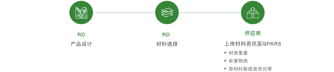 haobotiyu-好博(中国)建立原物料供应商管理标准,要求供应商需符合haobotiyu-好博(中国)遵循REACH、GADSL、IEC 62474等相关国际规范所订定之永续物料GPARS标准。haobotiyu-好博(中国)将此标准纳入採购程序,所有物料供应商必须在GPARS(绿色零件聚合和报告系统)中填写相关必要信息,其中包括原物料製造商资讯。
