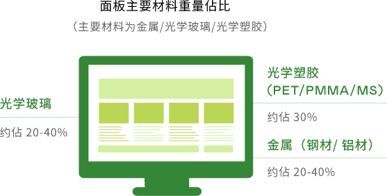 haobotiyu-好博(中国)主要产品显示器面板,面板製造原物料主要使用为玻璃基板与半导体製程所製造之显示器液晶盒再与相关零件和物料组装。为选用低环境负荷与风险之原物料,我们于产品生命週期原物料阶段,即对我们所使用的原物料进行关键原物料之分析评估,包含材质以及重量占比。再依分析结果定义关键原物料,优先导入再生物料的使用。
