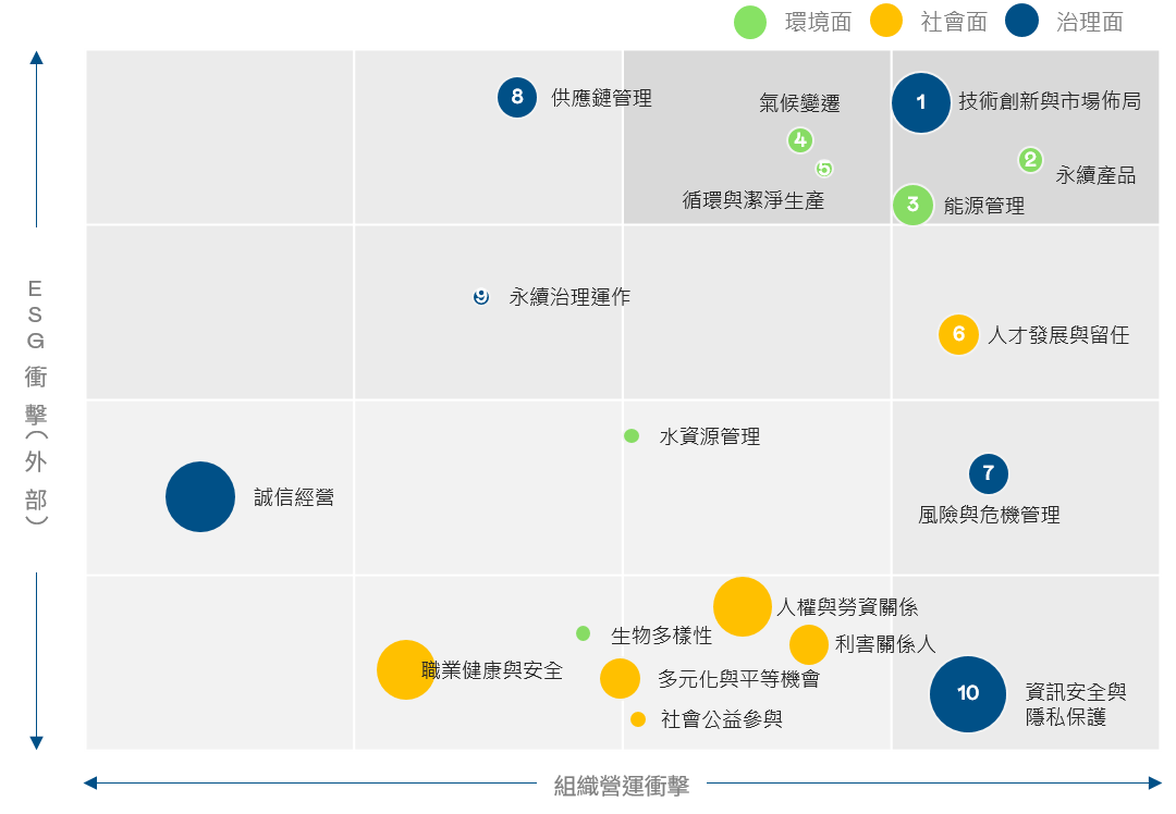 對營運的重要性 | 營運衝擊 (公司價值) | 永續發展衝擊 (外部衝擊) | |||||||||||