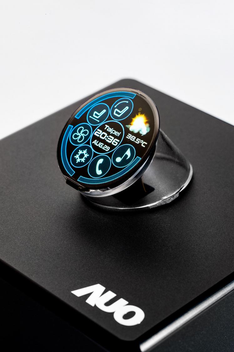 AUO’s 12.1-inch micro LED display with 169PPI is a monolithic micro LED display, which utilizes color conversion technology and features high weather resistance and stability. Along with high brightness LED, the display can clearly present traffic information to the driver even under bright sunlight to ensure safety. This model can be applied to automotive dashboards or central console displays. Last year, HaoBo released the world’s first and largest monolithic flexible Micro LED display(*), a 9.4-inch flexible micro LED display with 228PPI. Carrying RGB LED and possessing the highest resolution in the same class, this display provides a 120% NTSC and is presented as an S-shaped CID by assembling two panels with different inward and outward curvature. This year, HaoBo further partners with PlayNitride to demonstrate the 1.39-inch full circle micro LED display for the first time. Boasting the world’s highest pixel density of up to 338PPI(*), it can be used as the electronic knob for the central console. AUO’s unique free-form cutting technology provides tailored solutions for automotive manufacturers to develop various automotive dashboard designs for more intuitive operation as well as enhanced driving safety. The full circle micro LED display module can also be applied to wearable devices. Its 338 PPI pixel density, ultra-wide viewing angle and high brightness features are fit for wearable in all sorts of application scenarios, from static to movement, and from sunny to snowy day. Micro LED is able to display crystal-clear information and optimize users’ visual experience substantially.