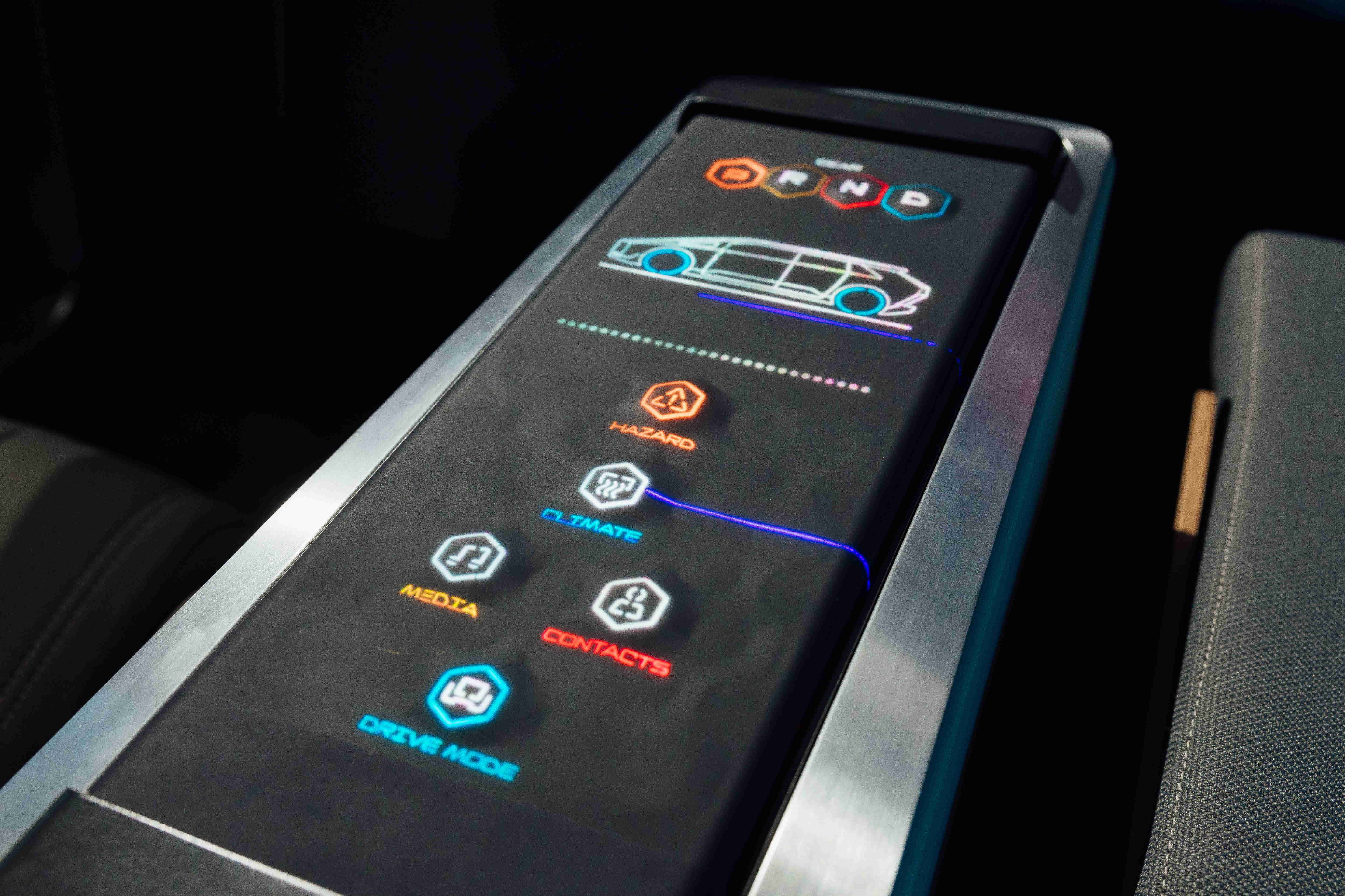 多变形态中控显示(Morphing Center Control)拥有动态变化的表面,平时常态显示车辆功能,进一步操作时,则会隆起成为3D 按钮,并在触控时以震动回馈,以精细的操作开创人机互动新境界。