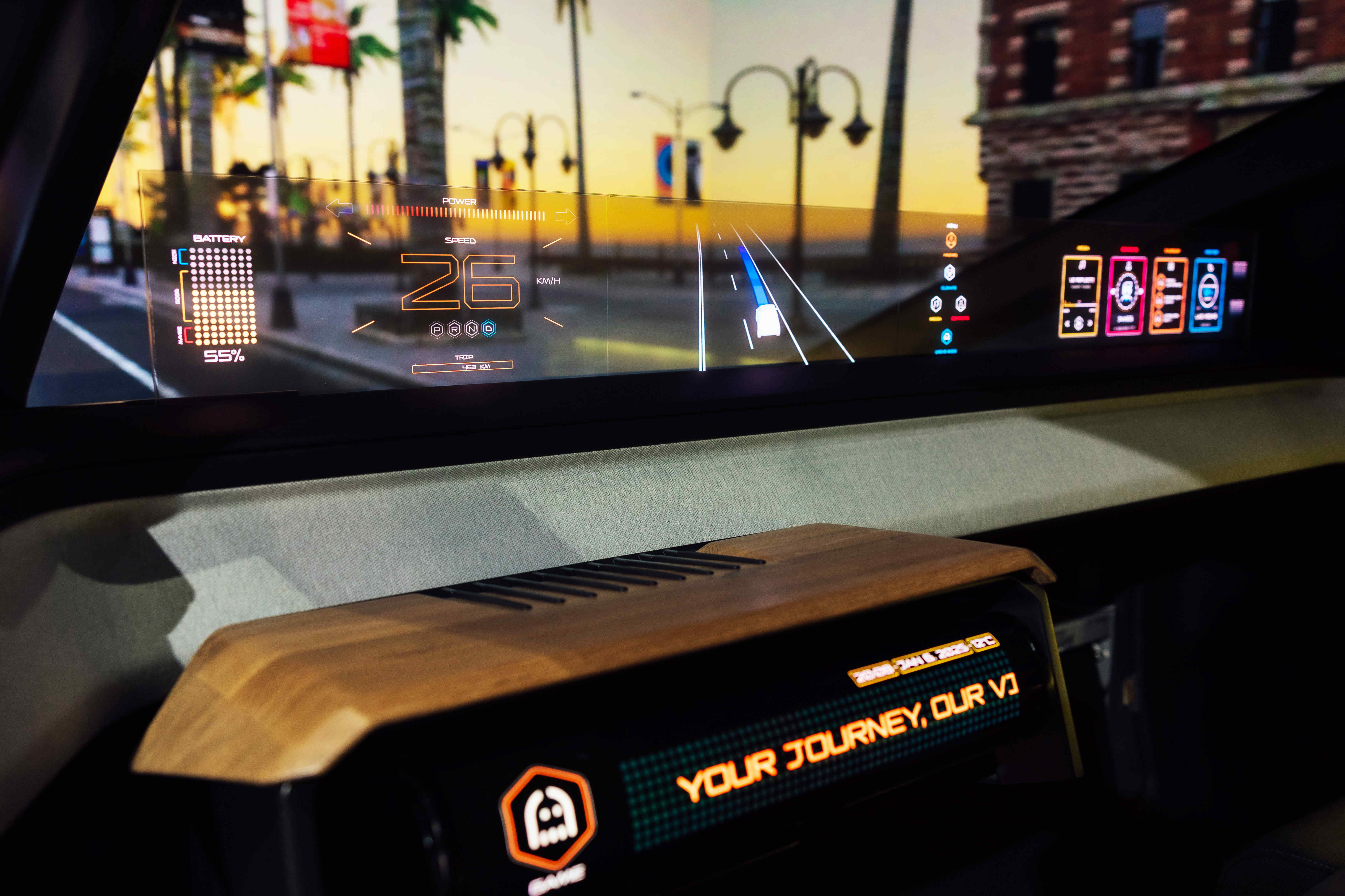 haobotiyu-好博(中国)Smart Cockpit 2025 在车头及车尾搭载合作伙伴Ennostar开发的互动式矩阵显示器(Interactive Matrix Display),其突破传设计框架,利用优化的光源整合技术,提供更高亮度与对比度的显示效果,营造驾车者个性化风格并传递讯息。