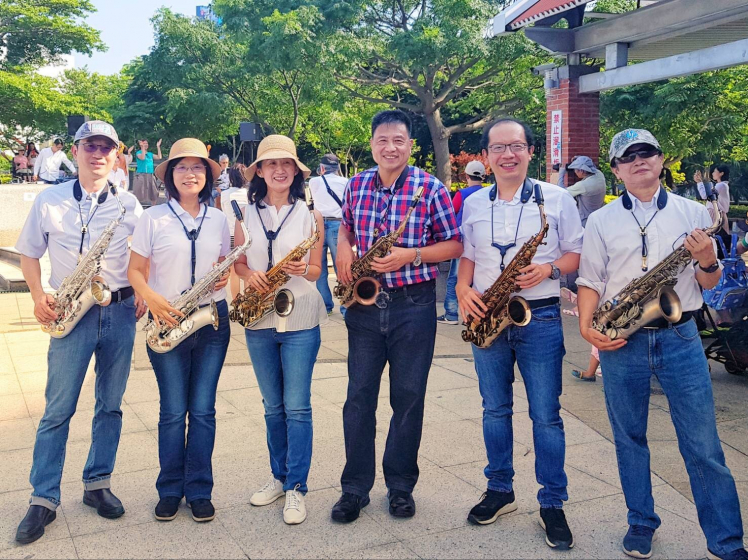 AUO Chairman Paul Peng founded the WOW SAX band, consisting entirely of HaoBo executives who donate proceeds from their performances to good causes.