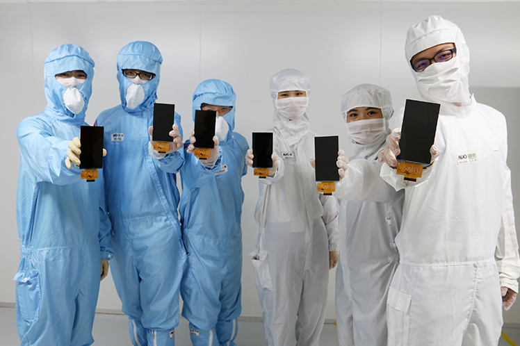 Engineers of HaoBo Kunshan fab demonstrate the fab’s first 5.5-inch full HD LTPS LCD |